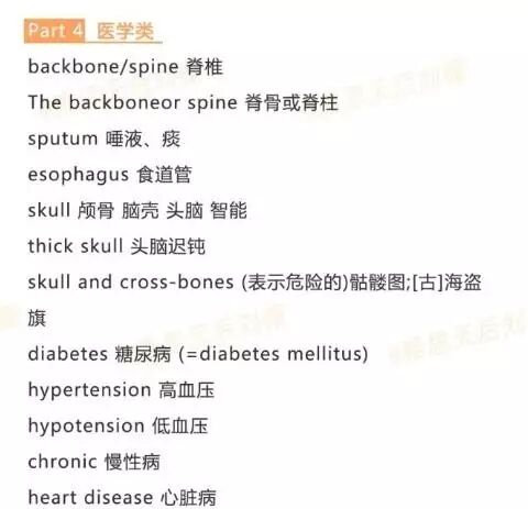 如下面这些医学类词汇,将其归纳积累,以后再做医学类文章就会轻松很多。