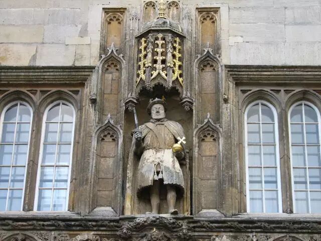 剑桥大学的许多传说都与学习无关,三一学院的正门口上方有亨利八世的塑像,他左手拿着一只金色圆球,右手本来是执着权杖,但被调皮的学生换成了一条桌子腿。对于有夜间攀爬癖好的学生们来说,换掉国王
