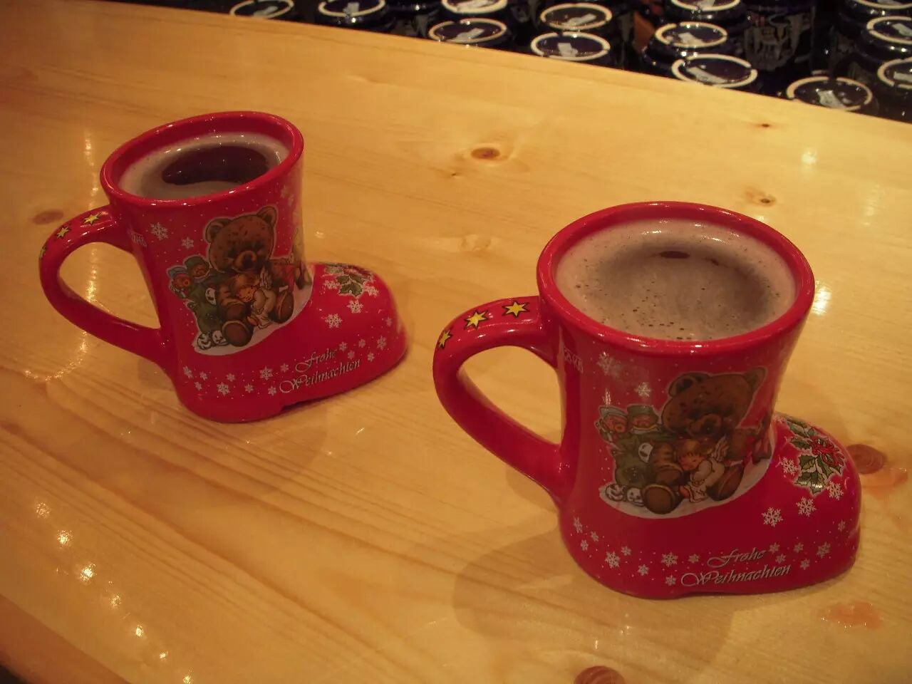 圣诞集市还有一个特色就是热红酒(Glühwein)瞎,酒的味道一般,可是杯子是真的很可爱!!!