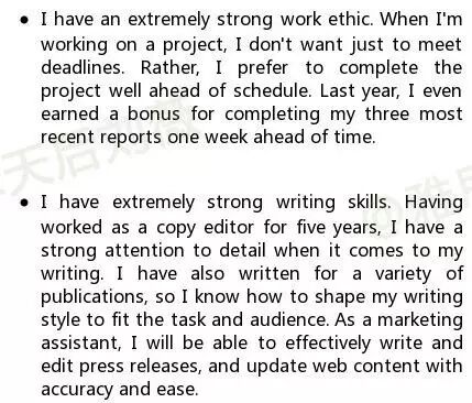 例如在介绍自己的强项时,虽然不能过于自夸,但也不能过于谦卑,合理自信地说出自己的优势,让对方信服你是一个理想的人选。