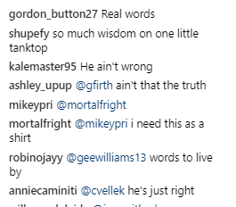 网友们纷纷支持这位大爷的正能量,背心上说的绝对没毛病!