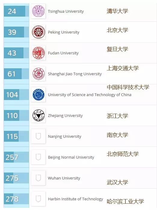 今年,清华大学再创新高位列第24位,这是自06年后清华第二次将中国大陆带入世界25强;北京大学位居全球39名,上升2名;复旦大学上升8个名次至第43位,成为中国第三所进入世界前50的大学;上海交大上升9位位居全球61名。