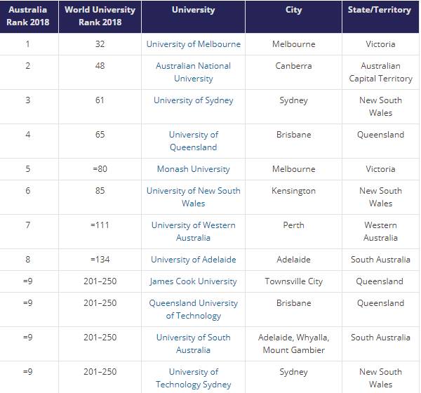 澳洲大学世界排名表现稳定,澳洲8大依旧表现优秀,墨尔本大学依然为澳洲第一,世界排名第32,共有6所大学进入世界大学TOP100。