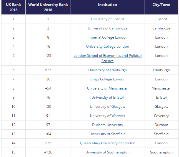 (Times Higher Education,简称THE)是英国发布最早的也是全球影响最大的排名,自2004年11月起,《泰晤士报高等教育》与QS公司合作,每年秋季公布世界大学排名。THE大学排名已经成为了学生了解、选择学校的重要途径和参考。