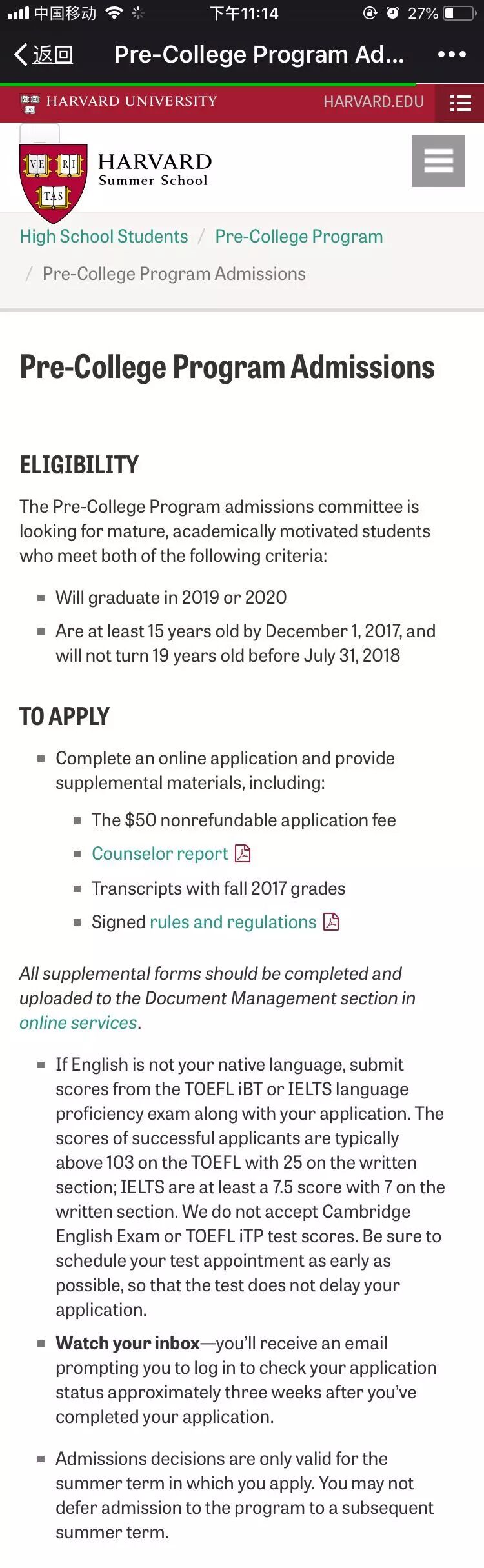 哈佛招生简章1、2、4条有年龄和成绩要求,而且只仅仅第3条,相信了解雅思或托福的同学已经能判断出这并不是个很好申请的program。