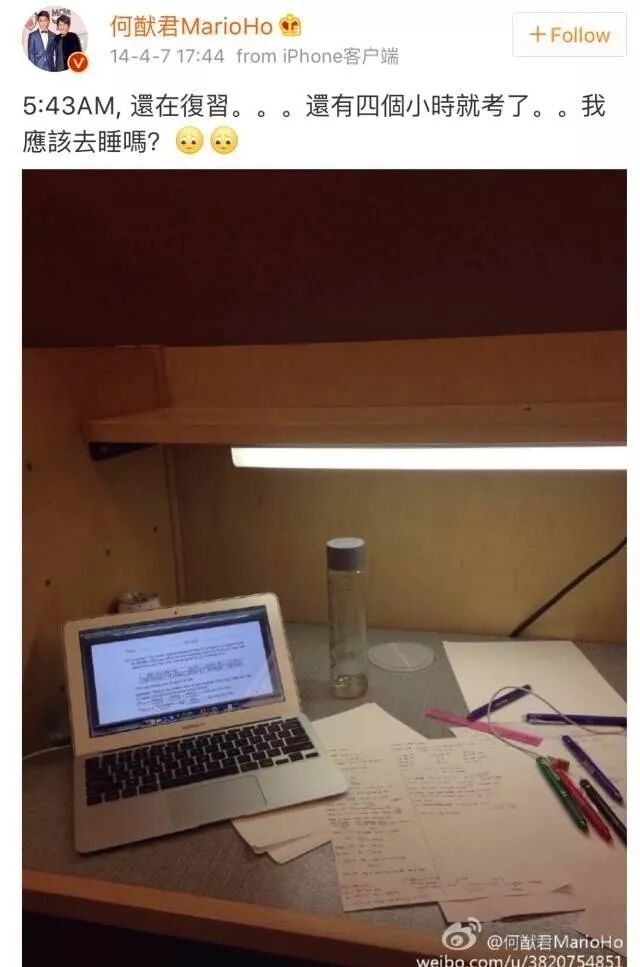 现实中,赌王儿子考试也会复习到凌晨,想成为学霸一定少不了熬夜读书的步骤。