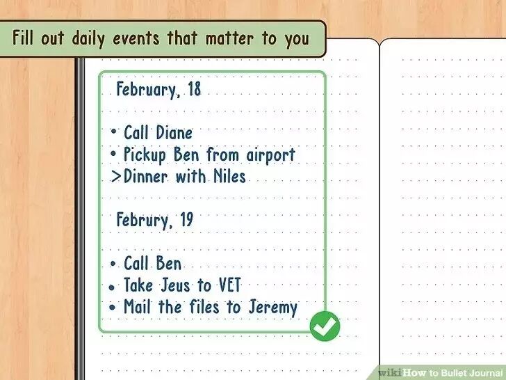翻到下一个空白页开始制定每日日志,老规矩,将这一天的日期写在页面上方。然后开始记录具体的条目,包括你要完成的任务以及想要做的事情。