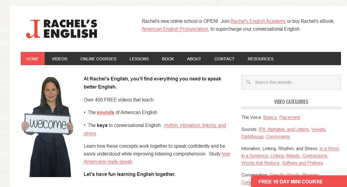 上面这个网站可以直接打开的哦,上面真的好多干货啊,瑞秋老师会提供一些关于发音、地道口语、语法、日常英语相关的视频内容。