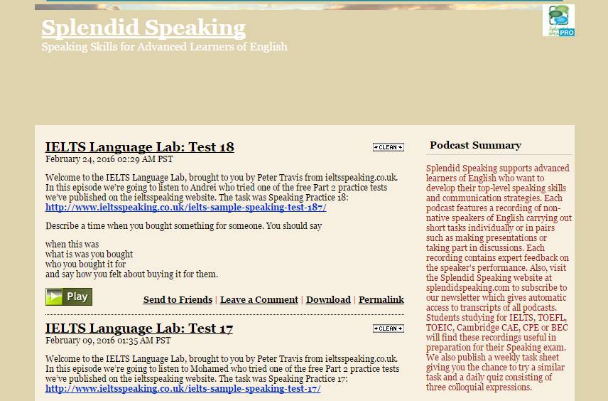 这个网站很适合准备IELTS, TOEFL, TOEIC, 剑桥 CAE, CPE 或 BEC考试的学生,可以作为口语考试的重要参考。你会听到别人是怎么说英语的,以及专业的口语建议。