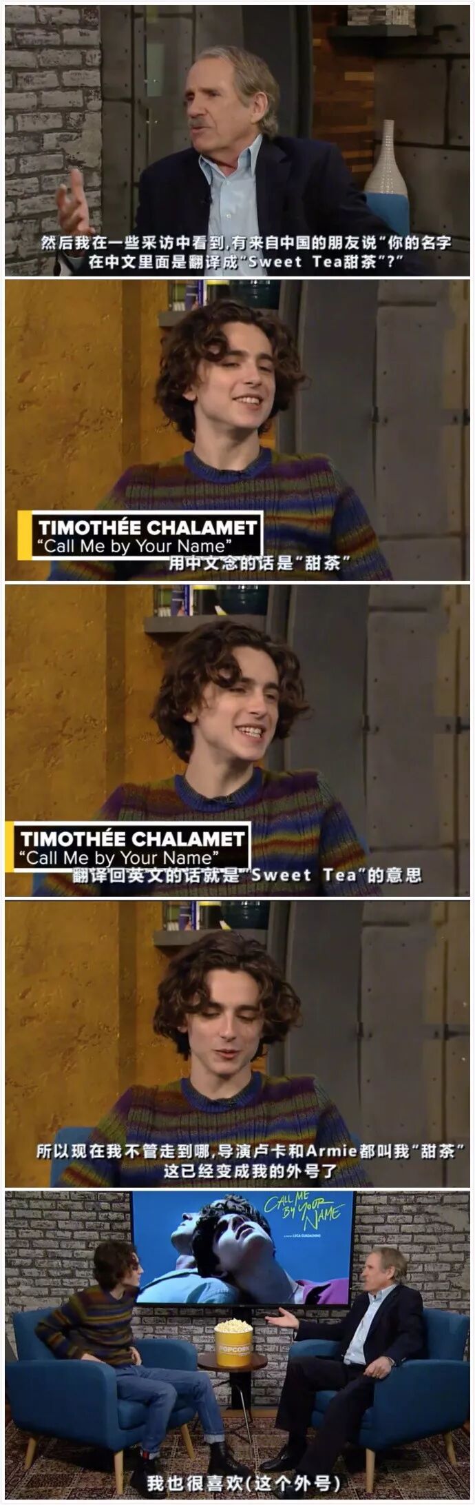 因电影《请以你的名字呼唤我》而被中国观众所熟知的提莫西·查拉梅一笑起来可是甜煞众人,加上名字谐音类似中文“甜茶”的发音,这个可爱的花名就顺理成章的出现了。